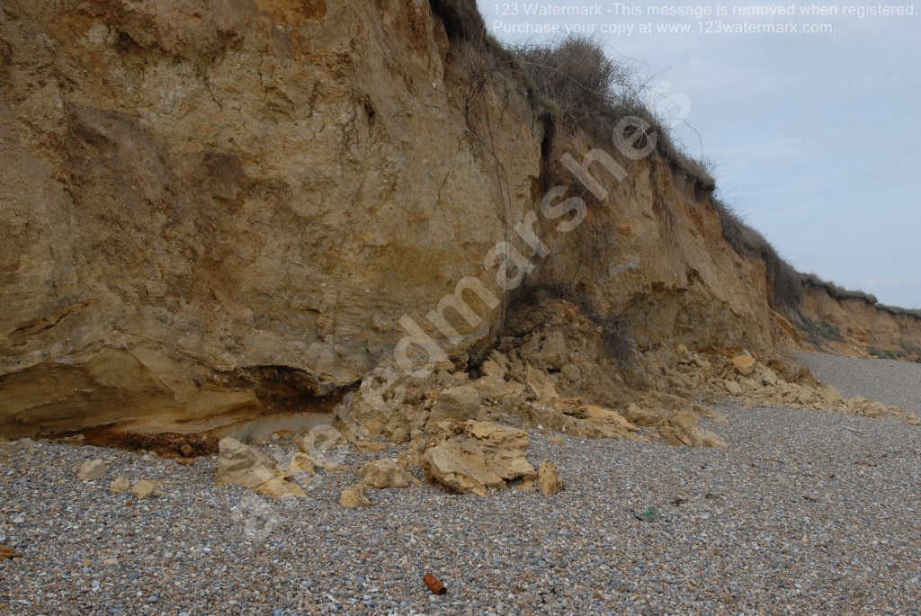 To begin with the cliffs, it is useful to consider the geographical make-up, to get a sense of structure. At the top can be seen, glacial deposits of sand, gravel and clays, thought to have been deposited by the Anglian Ice Sheet, around 450,00 years ago. Underneath is a layer of Norwich crag, comprised of marine deposits of fossil shells, bands of yellow and brown sands and clay. The penultimate layer is Red Crag, mostly courser sand and gravel, and this lies on harder Coraline Crag.