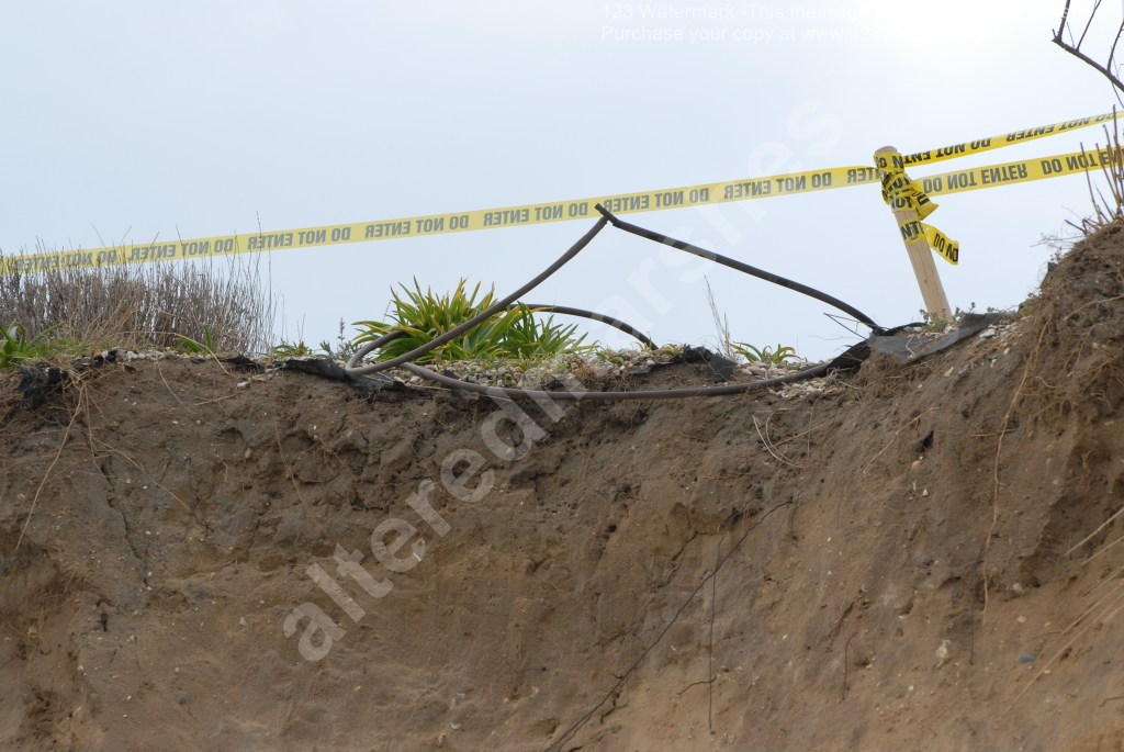 Features of erosion include notches in the beach and base of the cliff and removal of substantial sections of cliff frontage. There is considerable slumping of debris from the top and the bottom of the cliff deposited on the beach, along with trees, turf and concrete slabs from gardens above.