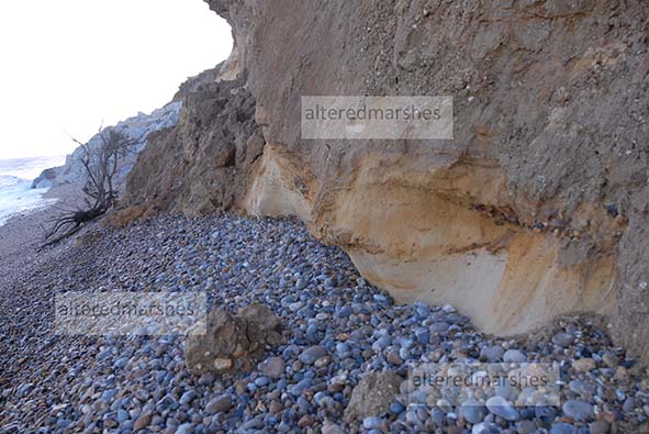 To start with Thorpeness, it might be quite straightforward to consider the framework of Palimpsest as a useful approach to analyse erosion at this location. As observations of erosion on the cliffs, show recent changes set in the context of the geology of the Pleistocene. Even though the beach changes quite dramatically, remnants of what has been laid down previously still show through. This is particularly relevant when considering the Pleistocene and the Palimpsest. As a couple of the poems analysed by Stoneman refer to Doggerland, a stretch of marshland that stretched between England and Europe, that was inundated by the sea at the end of the last ice age.