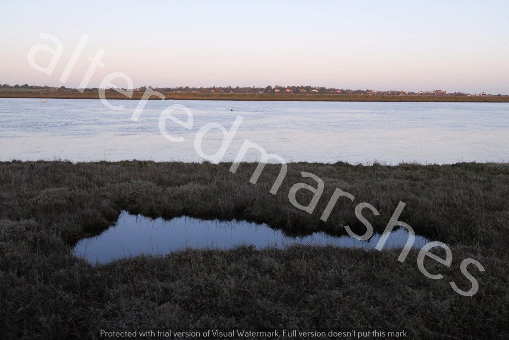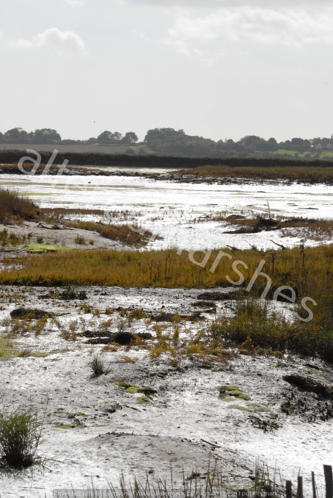 Silvery sun over saltmarsh. Hazelwood Marshes 2nd October 2022