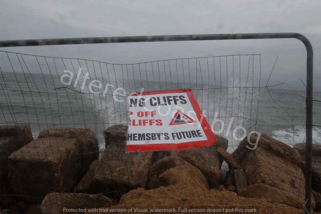 Blocks installed to try and stem coastal erosion at Hesmby Gap. 17th September 2023